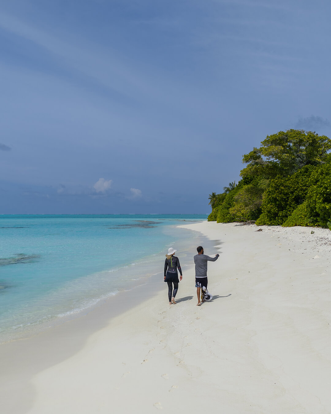 Bikini Beach on Fehendhoo is the only place where tourists may wear swimsuits — elsewhere modest clothing is required, and nude or topless sunbathing is prohibited. Alcohol is not allowed on local islands, and visitors should respect cultural norms, avoid loud music near homes, and keep the island clean.